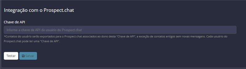 - Cole a Chave de API copiada do Prospect.chat