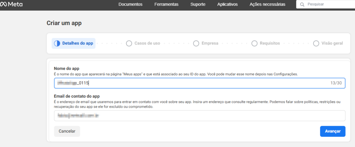 - Nome do app: utilize um nome que facilite a identificação.