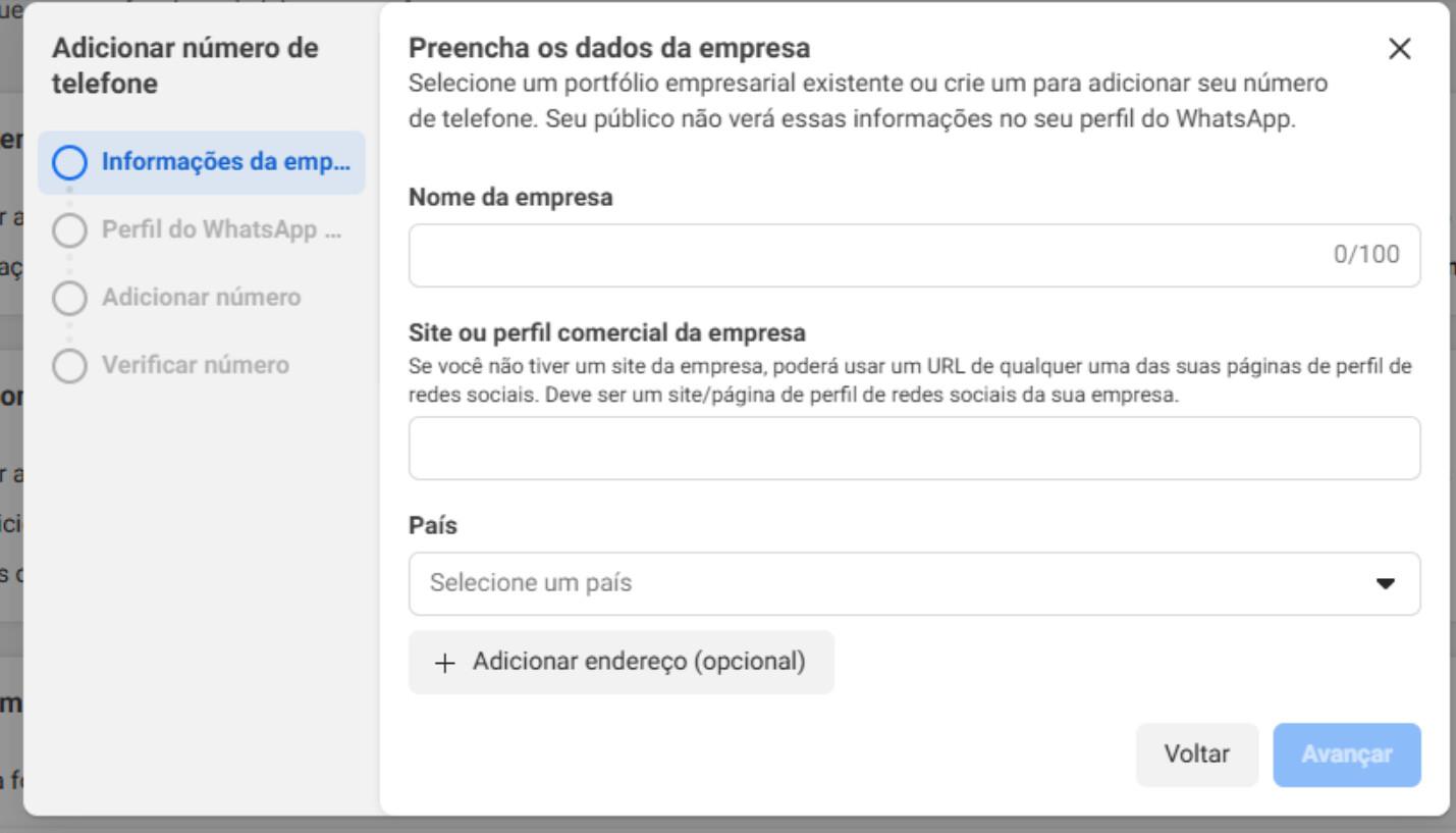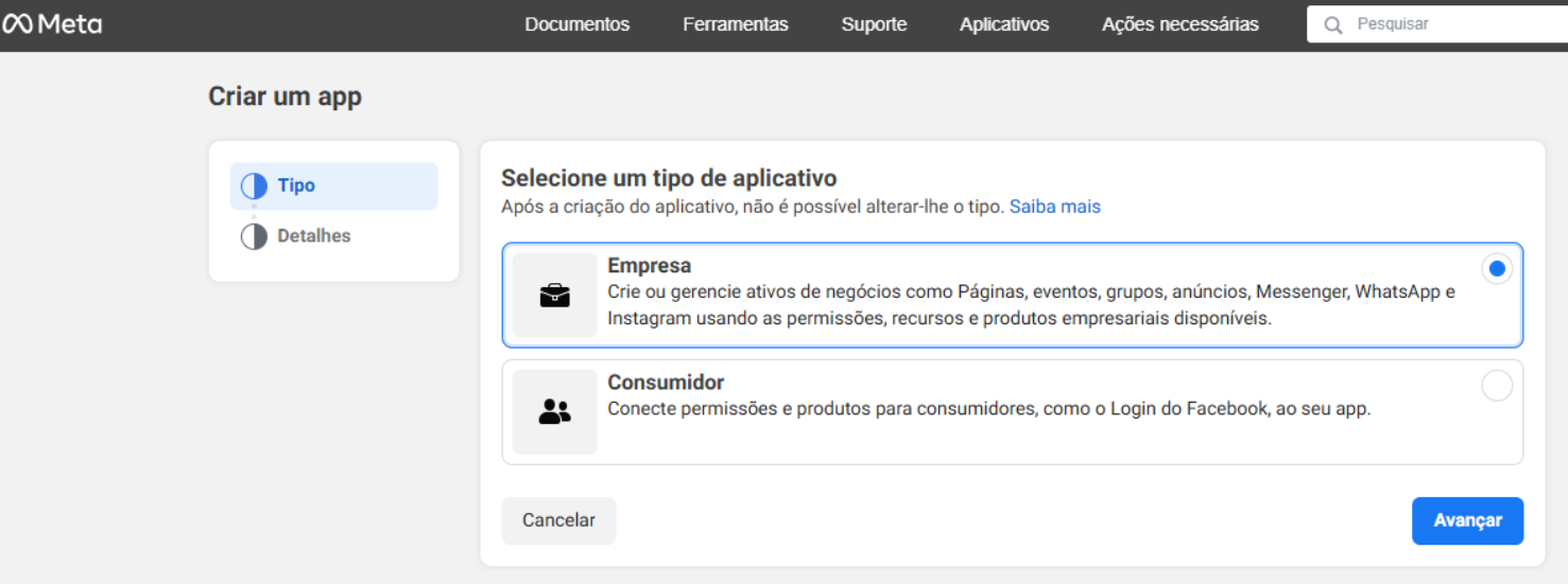 A empresa precisa ter um Portfólio Empresarial configurado na Meta.
