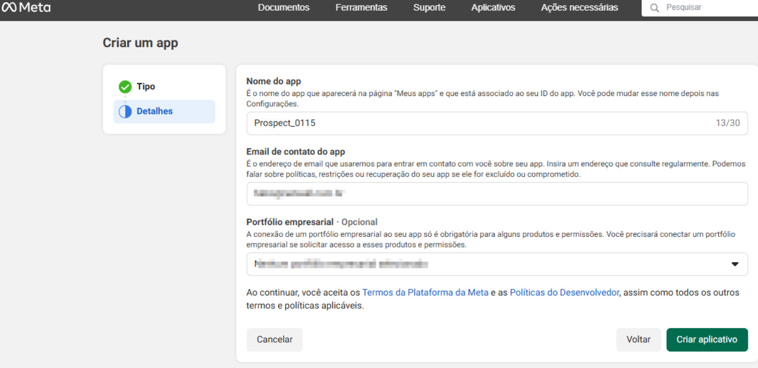 Criação do Aplicativo na Meta