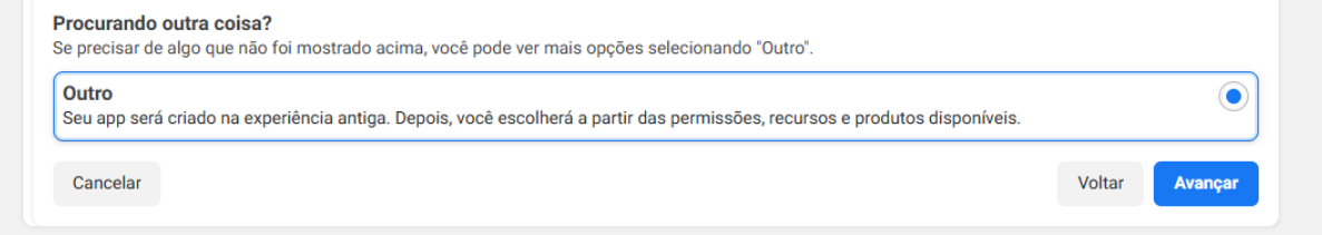 Nesta etapa, podem aparecer opções diferentes dependendo da interface da Meta.